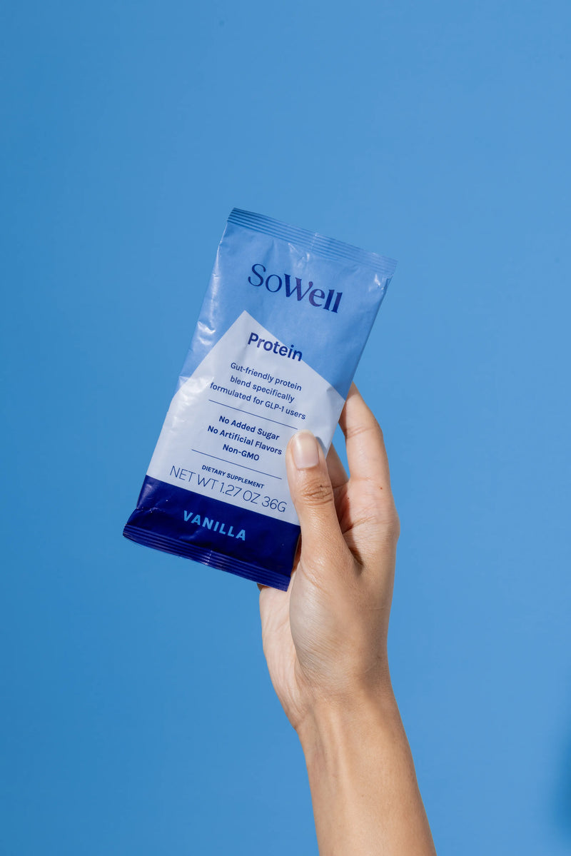 During weight loss, the goal should be to maximize fat loss and minimize muscle loss. One of the best ways to do this is take in adequate levels of protein. The reason I love SoWell Protein is because it has enough protein AND includes digestive enzymes handpicked for GLP-1 users and digestion.