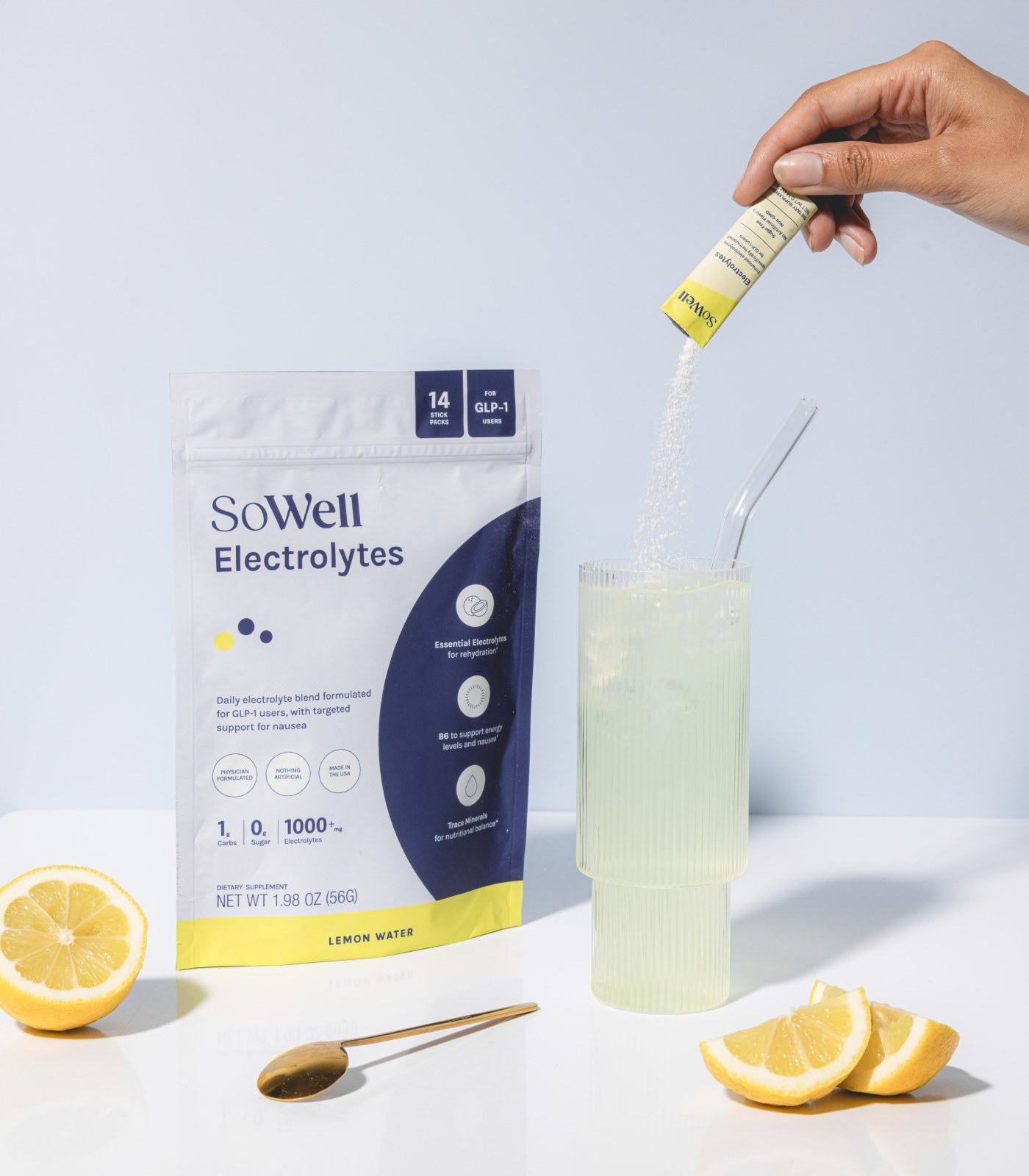 Nausea is the #1 side effect of GLP-1s. This refreshing daily stick pack combats that icky nauseous feeling by combining essential electrolytes with vitamin B6, which is proven to support nausea and energy.*